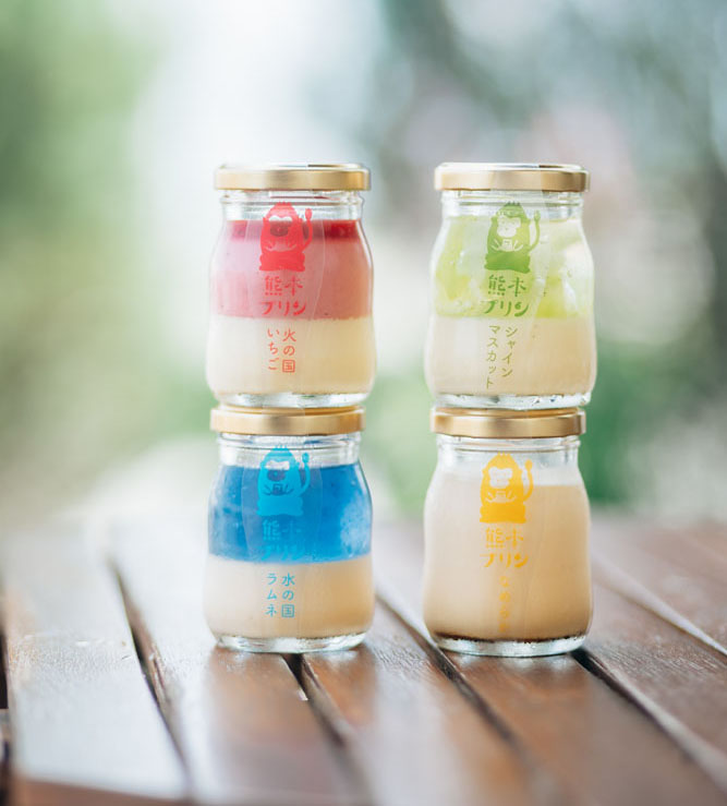 同園で採れるイチゴのパンナコッタが入った「火の国いちご」をはじめレギュラーは3種類。加えて、季節ごとに旬の果物入りのプリンが3〜4種登場する。