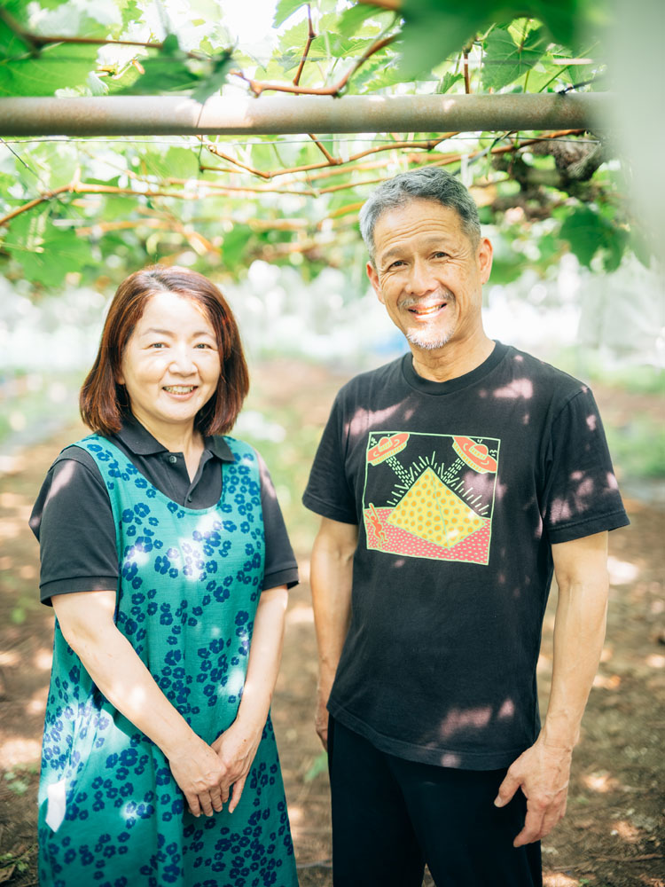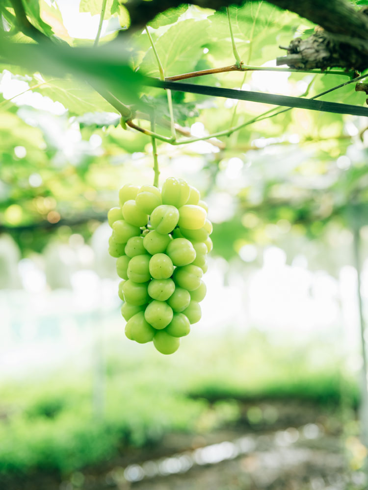 「緑とフルーツの里」と呼ばれる宇城市豊野町。四季を通じて多彩な果物が育つこの場所で1928年より果樹園を営んでいるのが「石井フルーツ」だ。ブドウ、太秋柿などを育てているが、とりわけ存在感を放つのはシャインマスカット。熊本でもいち早く20年前から手がけ、魚粉や酒粕を生かした土づくりと減農薬にこだわって育てられる。